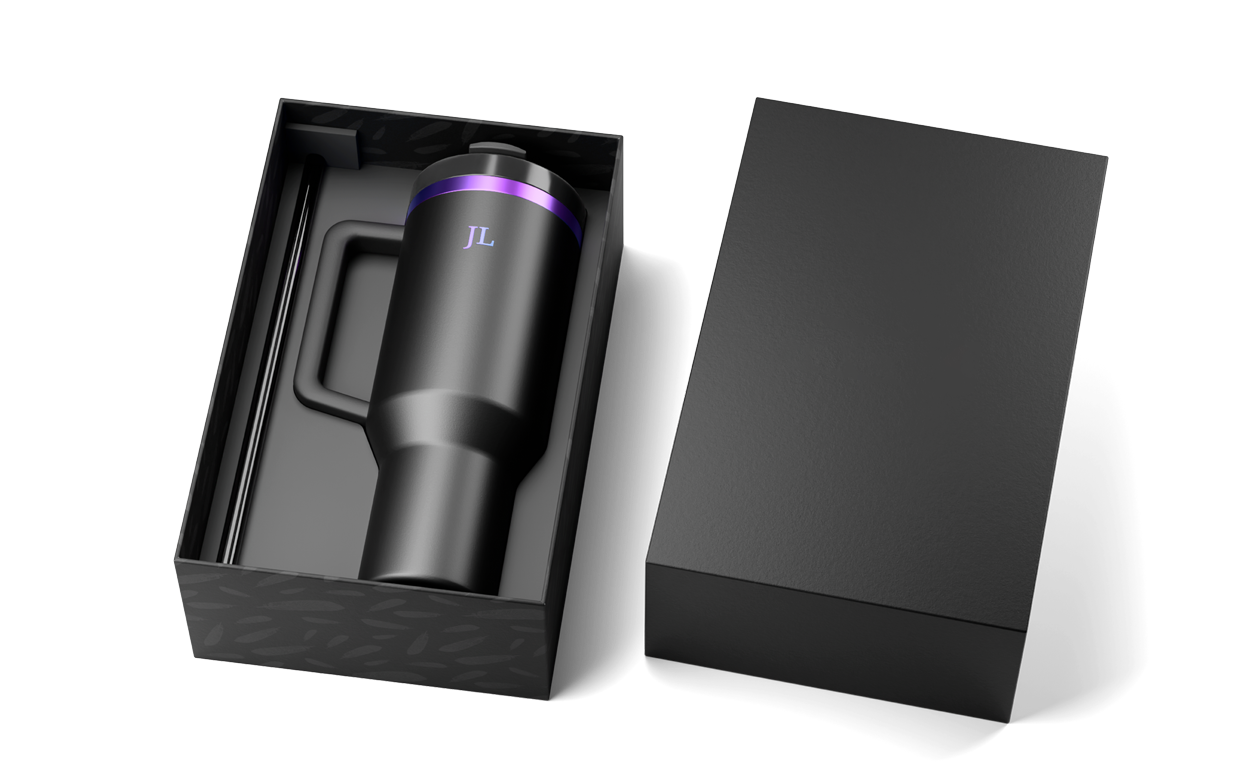 Double-wall vacuum insulated travel tumbler with full-cover top to prevent spills and reusable straw. Engraved by our experts with your custom logos, names or initials.